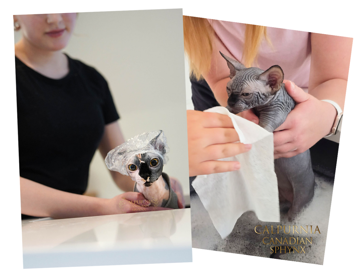Toisinaan sfinx saattaa olla säilyttänyt kissanvaistonsa eikä siedä lainkaan kastumista, jolloin kasvattajan rooli kissan pikkupentuvaiheessa on korostunut. Pentu tulisi olla totutettu hoitotoimenpiteisiin. Uudessa kodissa säännöllisiä hoitotoimia, kuten kylvetystä on syytä jatkaa tavan vahvistamiseksi. Kylvettämisen määrä riippuu kissan ihonlaadusta, ruokavaliosta sekä omistajan mieltymyksistä.